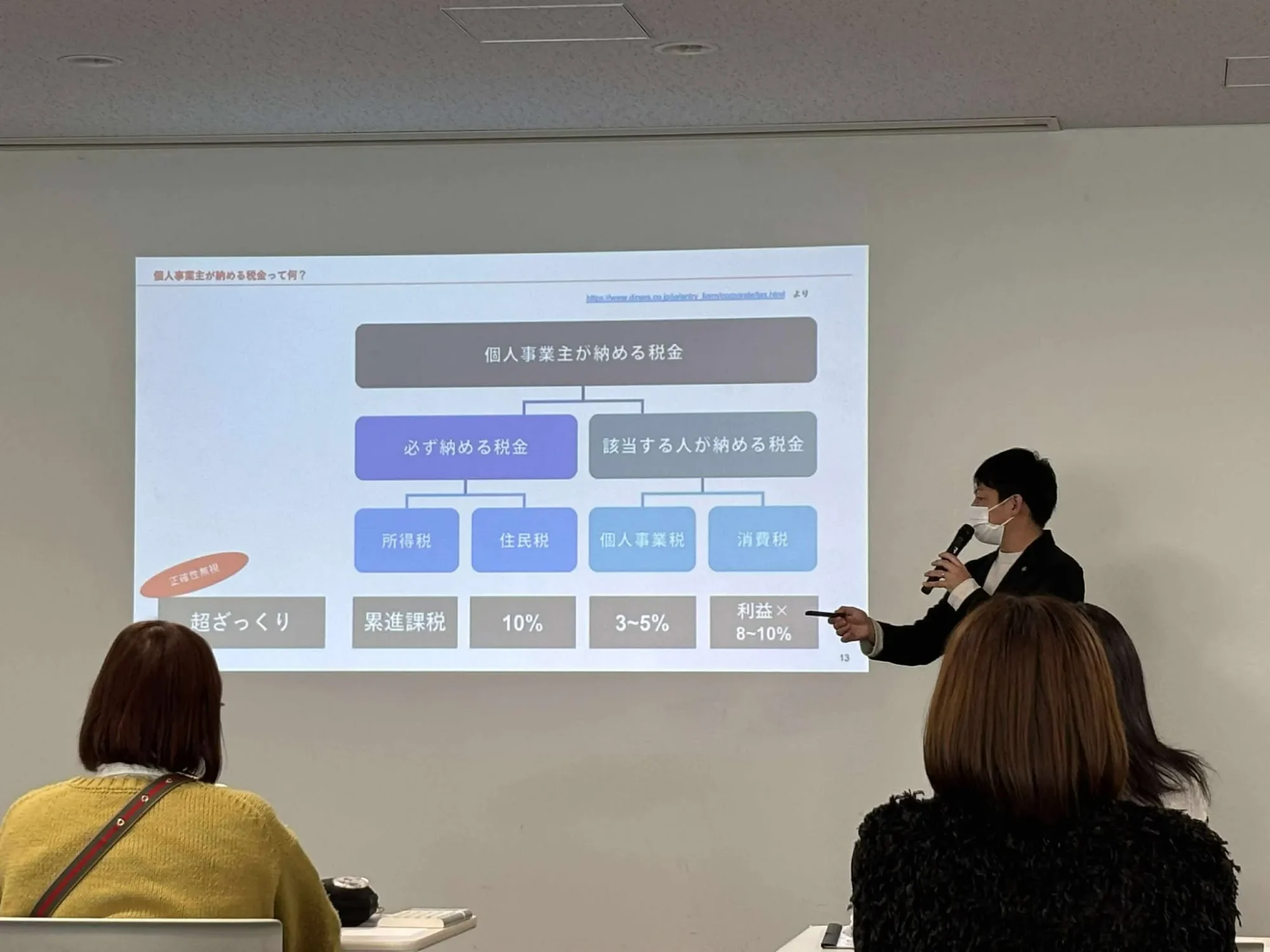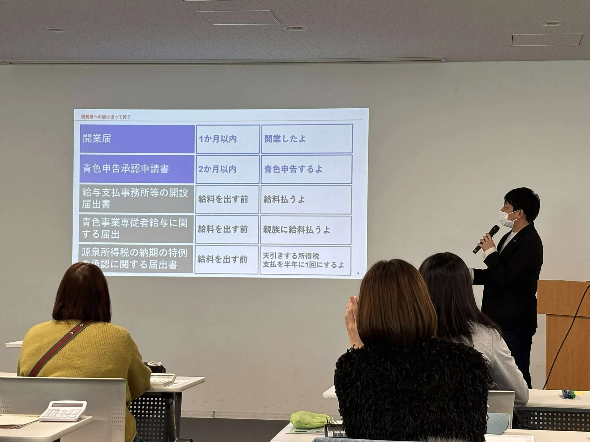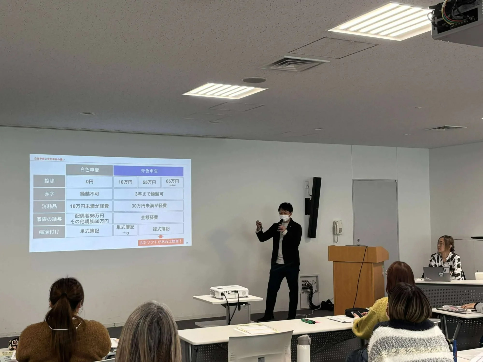 時期的にも気になる「確定申告」「青色申告」についてや、開業届の提出について、皆様興味をお持ちいただいているようでした。